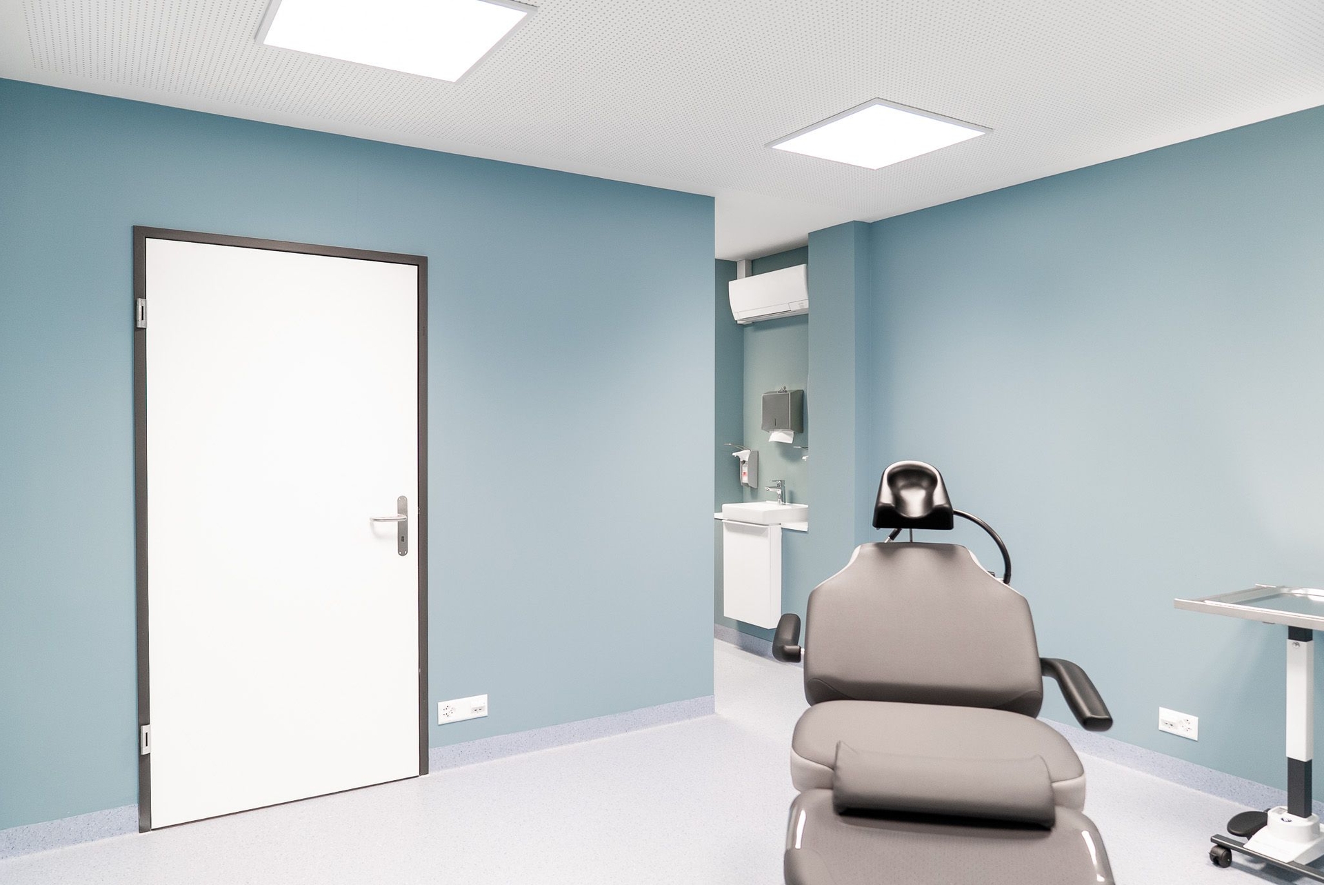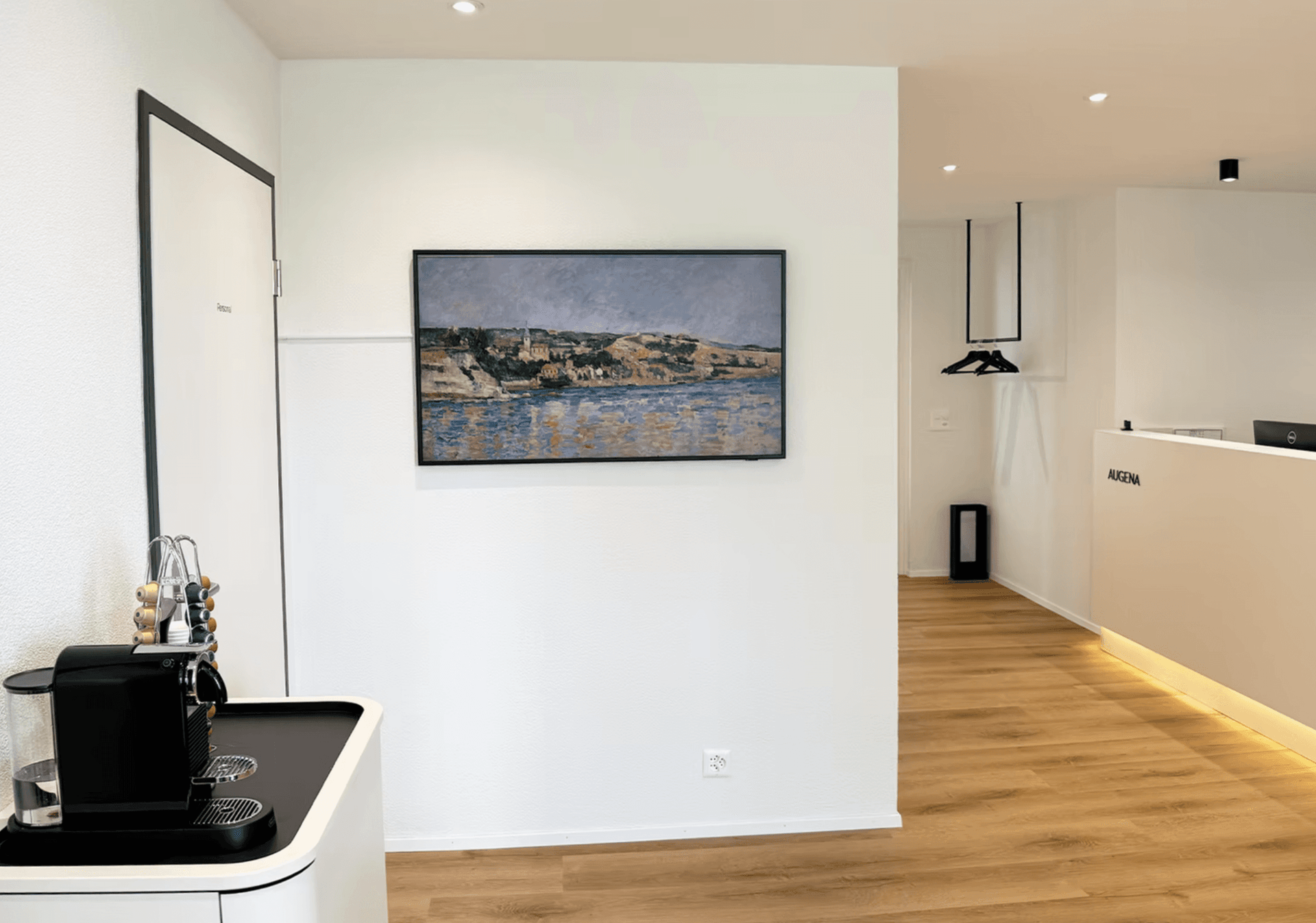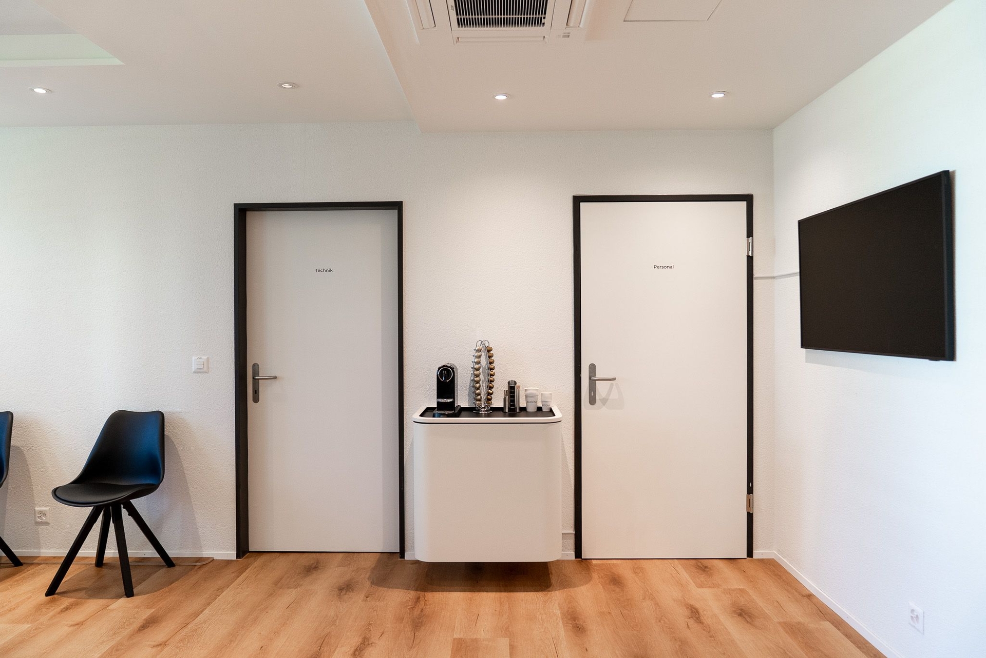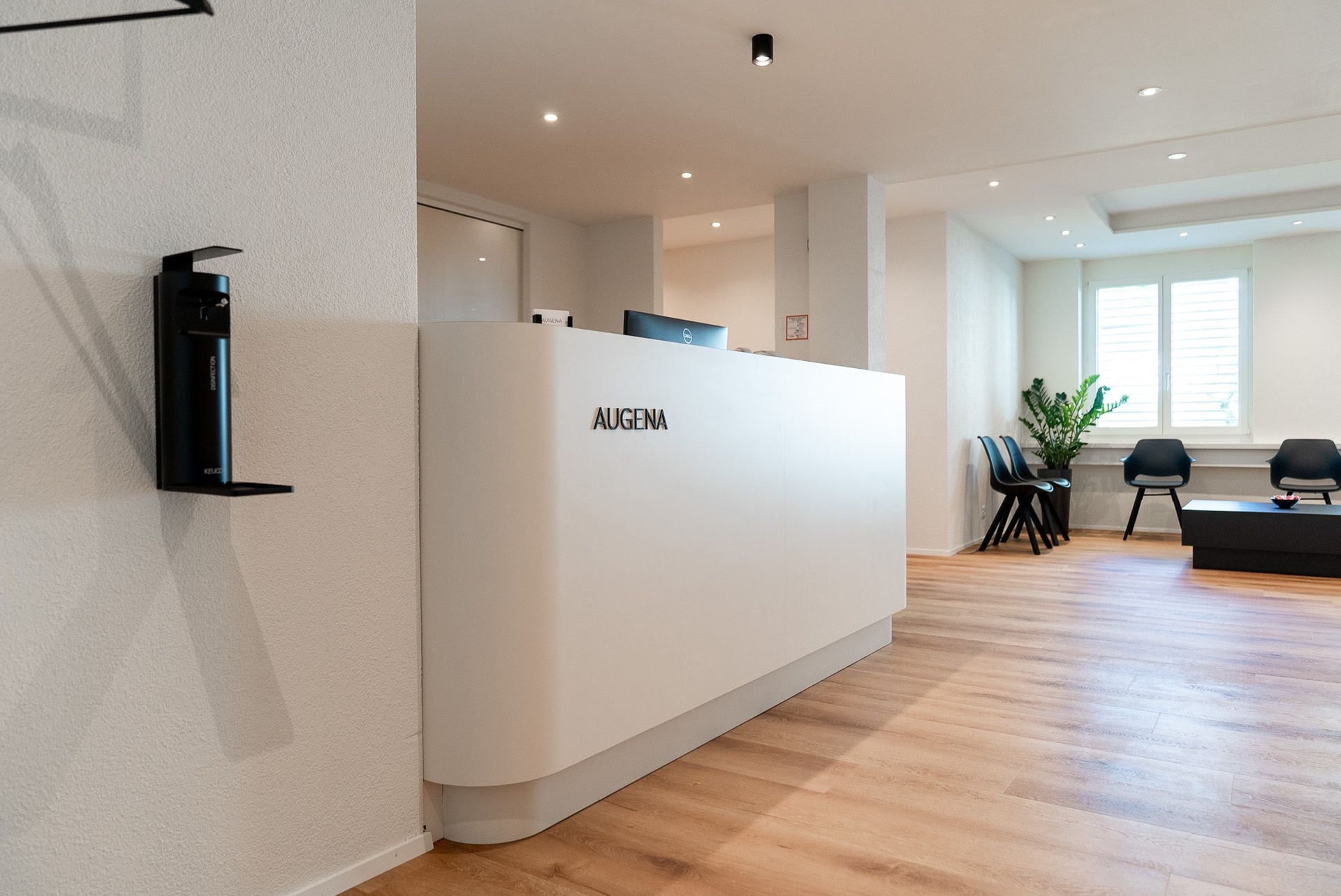 Mit einem klaren Fokus auf minimalistische Ästhetik im Boutique-Praxis-Stil haben wir den gesamten Designprozess – von der Planung bis zur Realisierung – übernommen. Massgeschneiderte Schreinerarbeiten in leichten, hellen Nuancen und weichen Formen, kombiniert mit Eichenholz, schaffen eine aufgeräumte Umgebung und fügen sich nahtlos in das Raumkonzept ein. Das durchdachte Lichtkonzept akzentuiert den warmen Charakter der Räume. Der gezielte Einsatz dunkler Kontraste unterstreicht den sportlichen Charme der Unternehmensphilosophie und verleiht dem Design zeitlose Eleganz. Das Herzstück ist die Deckenerhöhung im Wartebereich, die durch indirektes Licht dem Raum mehr Luftigkeit verleiht.