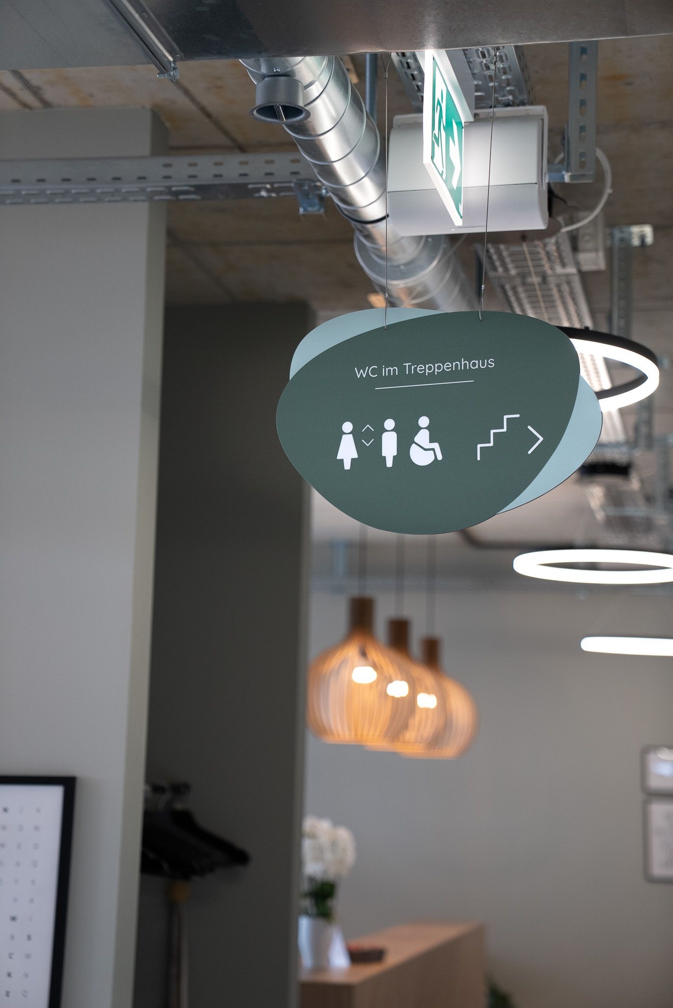 Die Möblierung folgt einer klaren, zurückhaltenden Formsprache. Warme Materialien, pudrige Farbakzente und sorgfältig ausgewählte Textilien sorgen für Behaglichkeit. Ergänzt wird das Konzept durch eine dezente Signaletik, die sich unaufdringlich in das Gesamtbild einfügt und die Orientierung unterstützt.