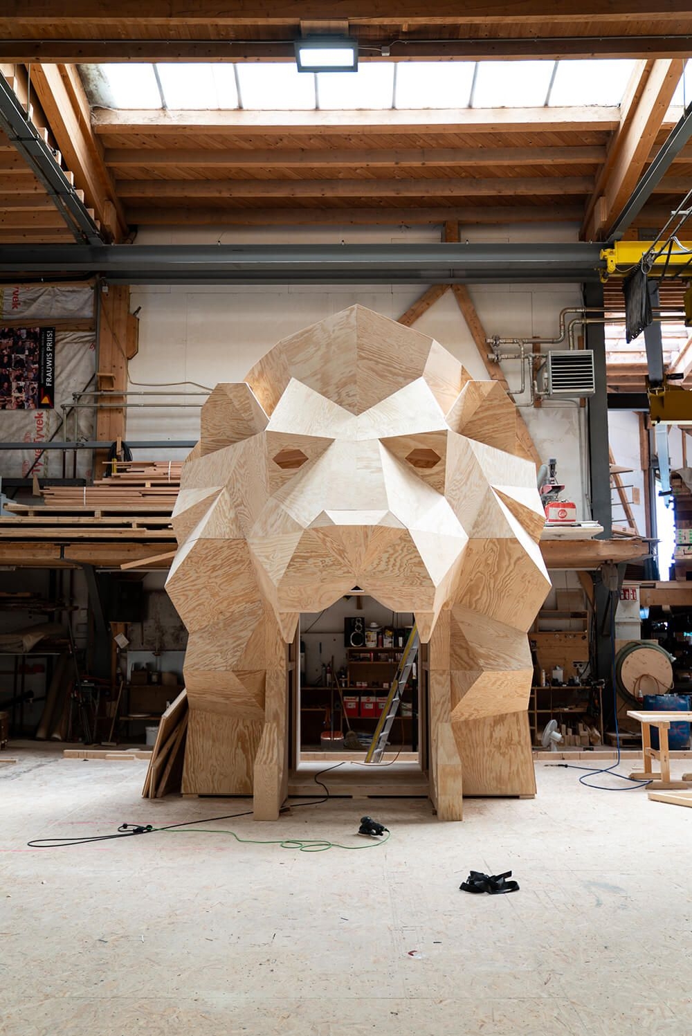 Das Design stammt aus der Feder von Sabrina Kuhlmann, Designerin & Kreativdirektorin bei buravida. In enger Zusammenarbeit mit den Holzbauexperten von Schindler & Scheibling entstand der Löwe in modularer Bauweise, gefertigt in einer Werkhalle in Uster. Jedes Segment wurde präzise konstruiert und von buravida veredelt, um die imposante Skulptur effizient auf- und abbauen zu können.