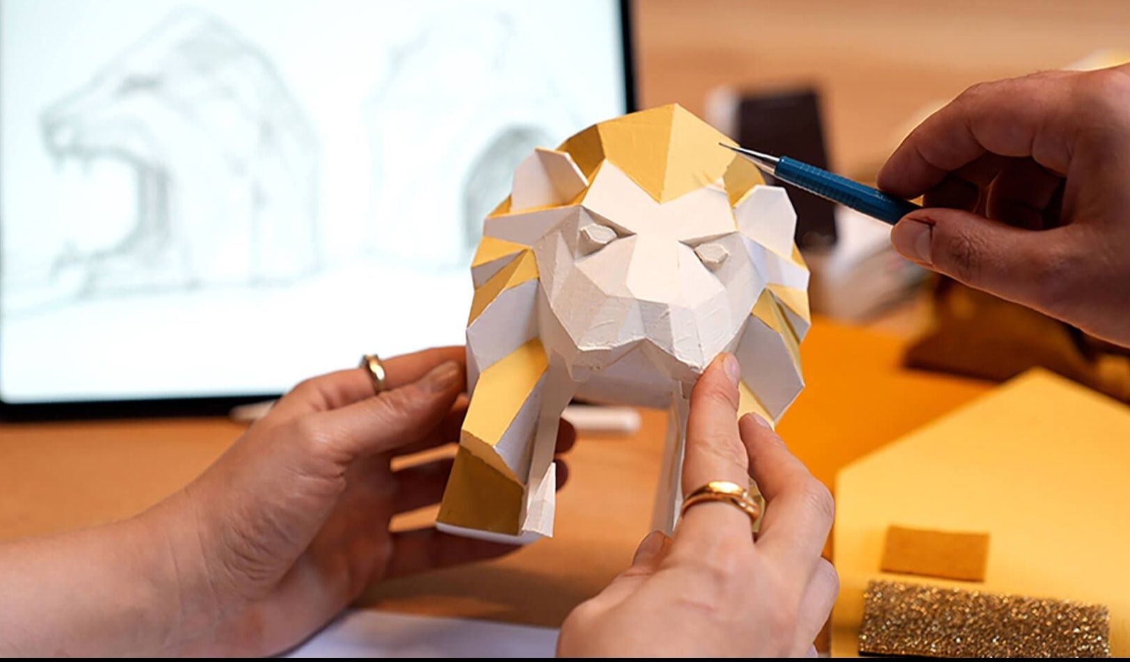 Der Löwenkopf wurde geometrisch im Polygonstil gestaltet und kombiniert, matte und glänzende Elemente, die einen lebendigen und edlen Kontrast erzeugen. So entsteht eine moderne Interpretation des klassischen Symbols. Zeitlos, imposant und mit Charakter.