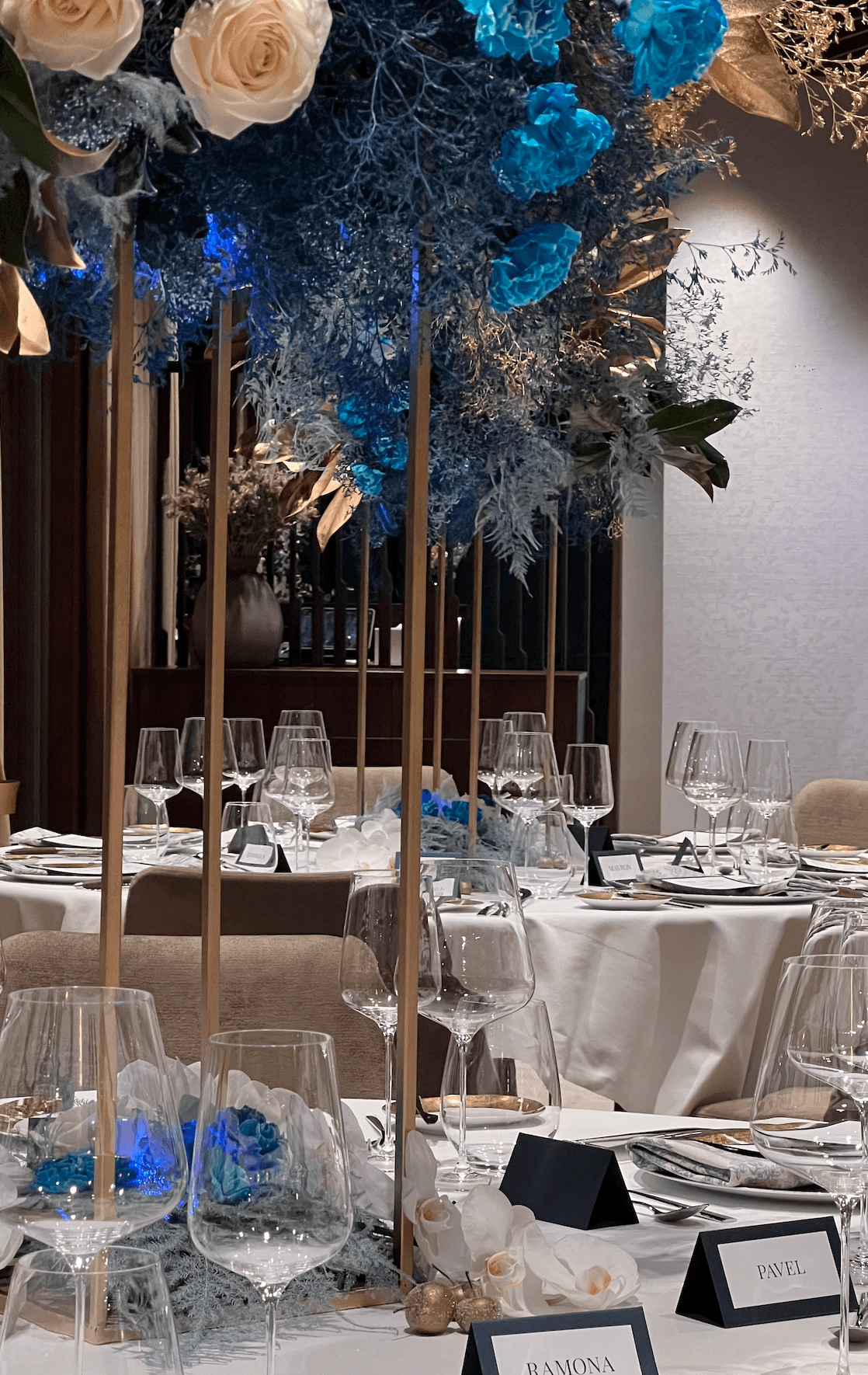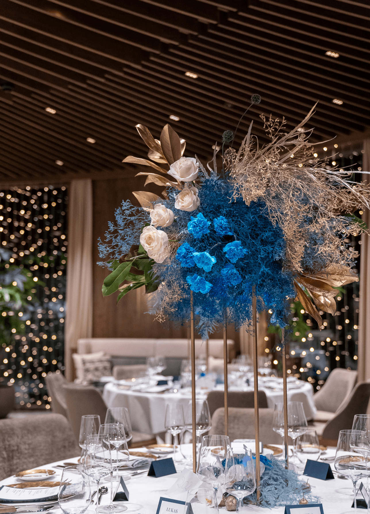 Beim exklusiven Gala Dinner in St. Moritz hat Buravida ein einzigartiges florales Styling mit Lichtintegration geschaffen. Inspiriert von moderner Eleganz und luxuriösem Design, wurden beeindruckende High Centerpieces konzipiert, die mit Blüten in Corporate Farben und goldenen Elementen ein harmonisches Gesamtbild formen.