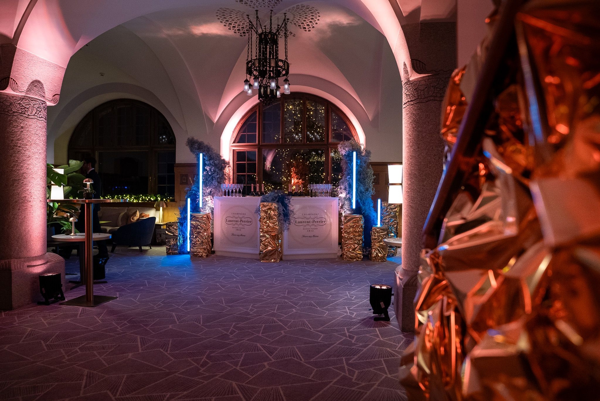 Das Eventdesign kombinierte stilvolle Opulenz mit innovativen Lichtkonzepten und schuf eine spektakuläre Kulisse für eine rauschende Silvesternacht, die den Gästen noch lange in Erinnerung bleiben wird.